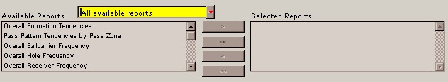 A Mover Lists consists of 2 scroll boxes and a set of buttons. The objective is to move the items between the boxes until the desired selections have been made. Any highlighted selections can be moved with the > or < buttons. All available elements may be moved with the > and < buttons. Multiple selections may be made by holding down the shift key and clicking additional items. Selections may also be moved by 'double clicking' or by using the 'drag and drop' method.