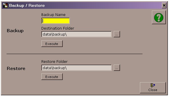 Use the Utilities Menu to access the Backup/Restore form shown below.